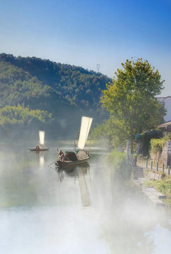 薄雾弥漫之时,这里就像是一副巨大的水墨画。借着这样的景色,吟诗两句绝非刻意,而是不由自主的赞叹。