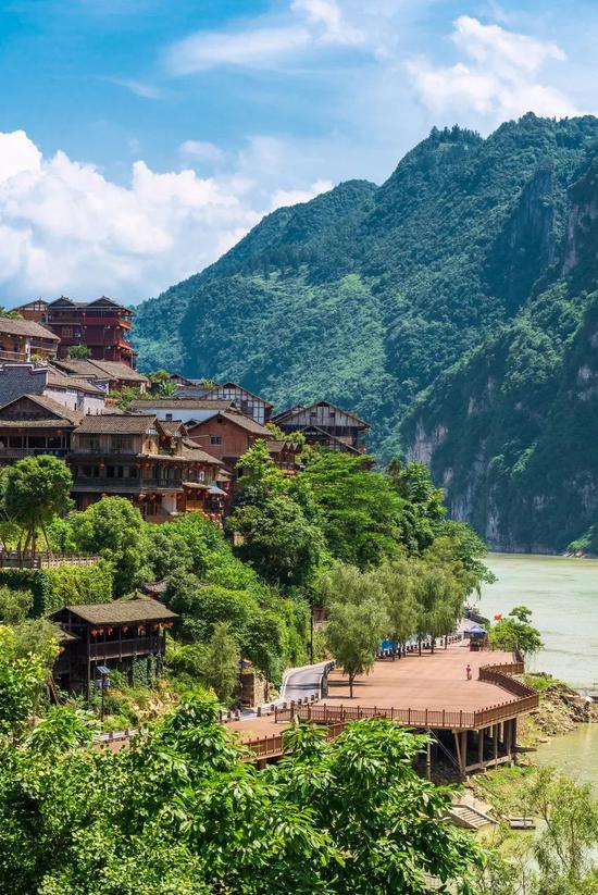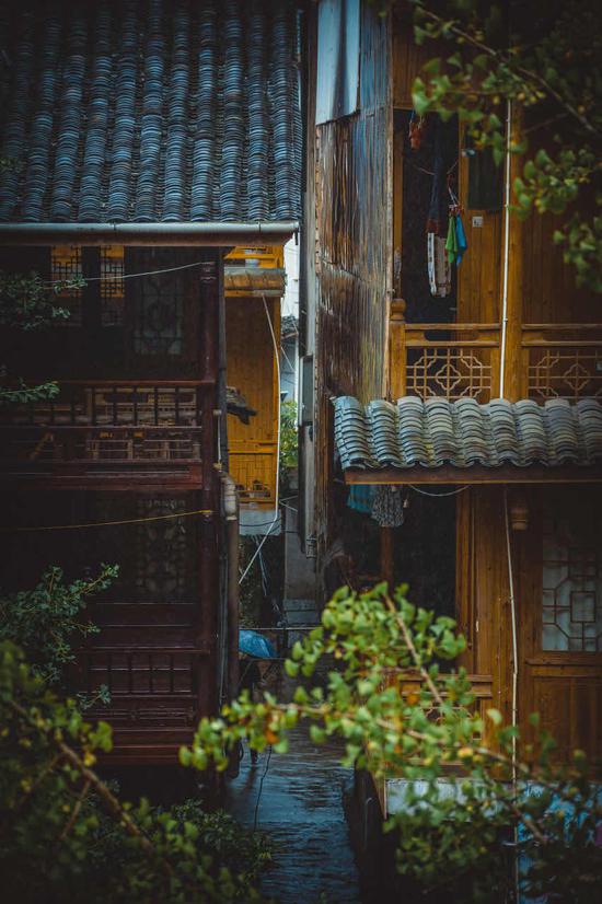 与很多白墙青瓦的古镇不同,这里的建筑主要以木制的吊脚楼式建筑为主。